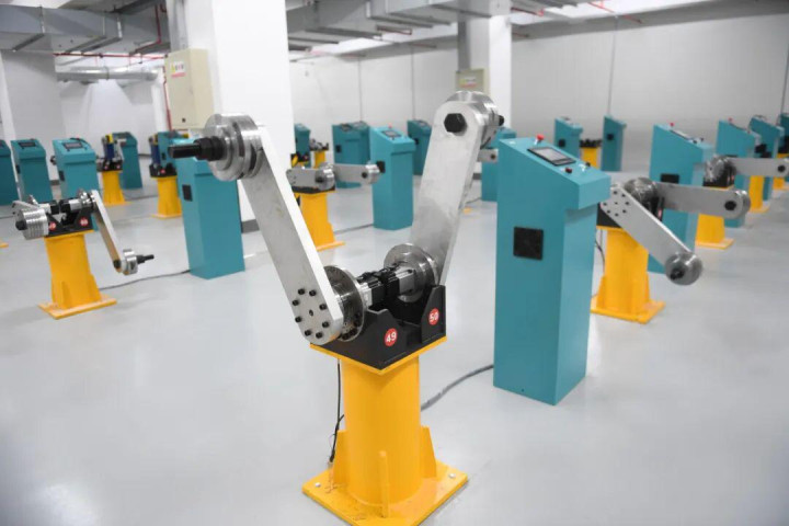 2024年2月29日,在位于浙江省台州市黄岩区的科技公司,自动化设备对应用于机器人关节的谐波减速器进行寿命测试。